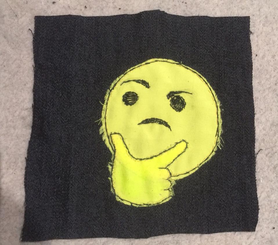 Despite my angst about the outcome of my old course, the experience did ignite a passion I never knew I had – hand sewing. I made a few patches of bands I enjoy and a thinking emoji patch.